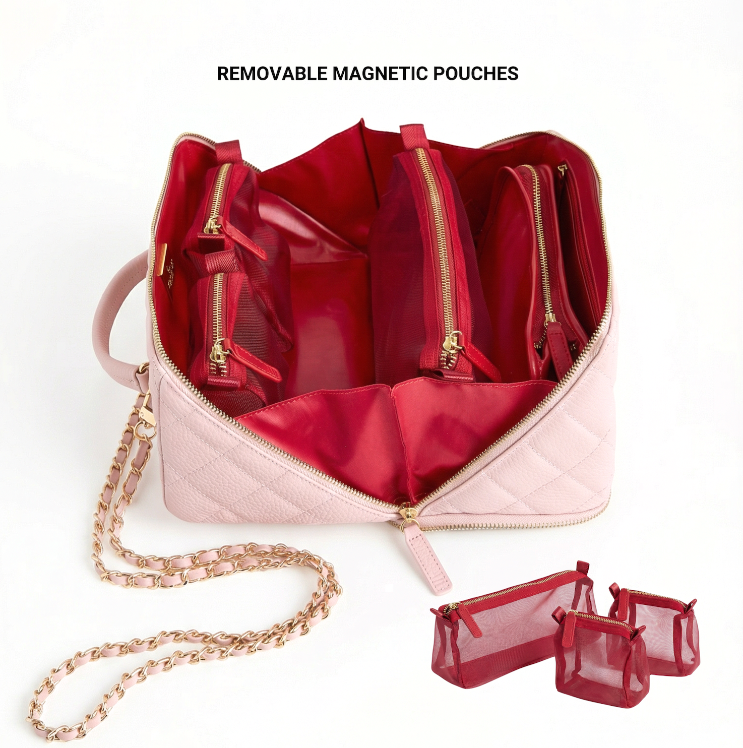 ✨ You’re not just getting one bag… you’re getting FIVE-IN-ONE: 3 magnetic detachable pouches + 1 removable bottom compartment, plus a brush holder